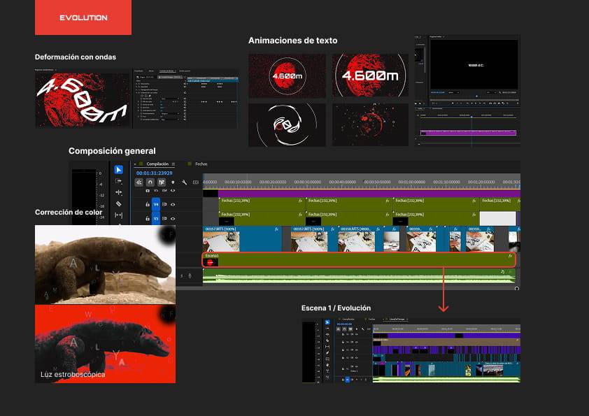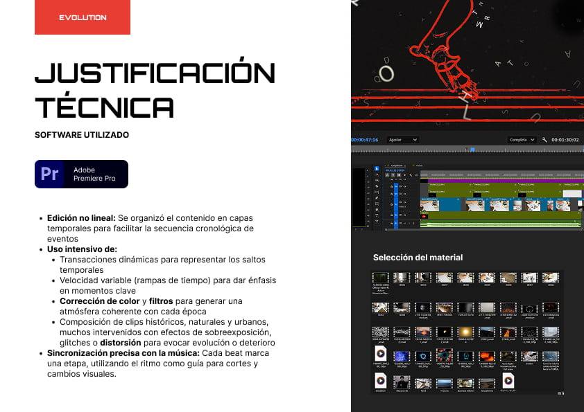 Me interesa el desarrollo de imágenes y efectos, área en la que suelo trabajar con After Effects. En este proyecto decidí asumir el desafío de utilizar exclusivamente Premiere Pro. Si bien no está diseñado específicamente para la creación de vectores o efectos complejos, Premiere demuestra tener un potencial mucho mayor del que comúnmente se le atribuye.