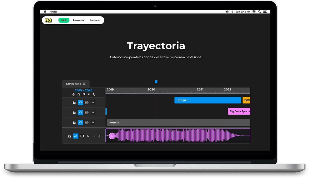 Este proyecto consistió en el desarrollo del portfolio web de Nacho Dumanski, editor de video, con el objetivo de construir una experiencia digital alineada con su identidad como creador.