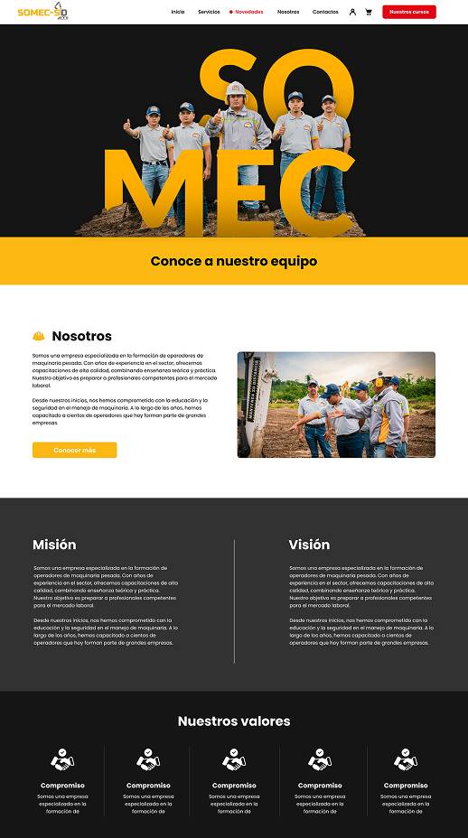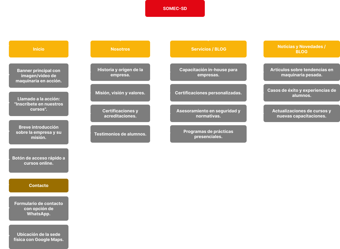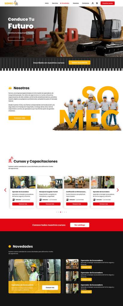 SOMEC es una empresa orientada a la formación en maquinaria pesada, cuyo sitio web presentaba problemas de estructura y acceso a la información.